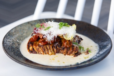 Slowly cooked venison ragout, truffle, tomato compote, Grana Padano sauce